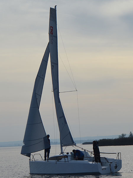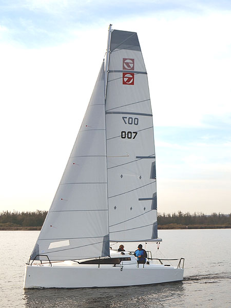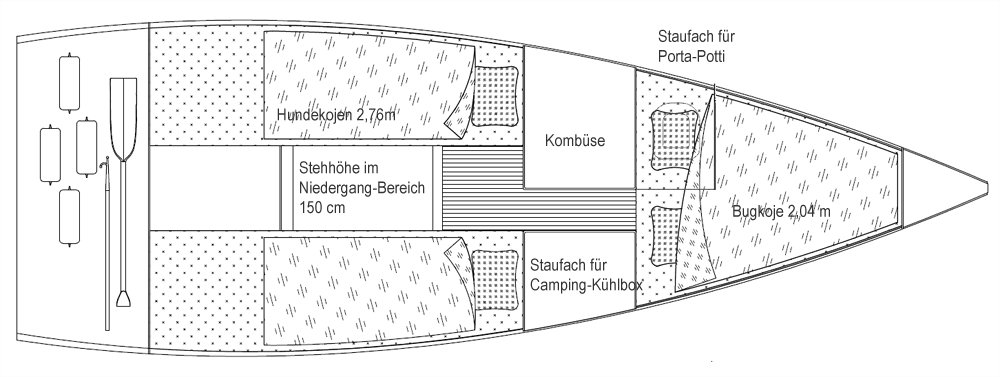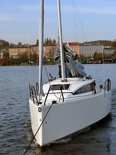 Seven - sportlich, schnell, sicherDie Yacht wird Sie begeistern. Der Rumpf lässt sich mit zwei Kielversionen kombinieren. Standard ist der T-Kiel mit Bleibombe, mit 145 cm Tiefgang. Optional gibt es einen Performens-Hubkiel mit 160 cm Tiefgang. Beide Varianten haben ein ausgezeichnetes Geschwindigkeitpotential und sicheres Fahrverhalten. Alle Fallen und Kontrolleinen könne von Cockpit her bedient werden. Unter Deck erwartet Sie ein großzügiger Raumangebot. Eine Doppel-Bugkoje von 2,10 länge und 2 Salon/Hundekojen (2,6m) bitten viel Platz zum Schlafen. Auf der StB-Seite finden Sie ein Staufach für Camping-Kühlbox. Gegenüber befindet sich die Kombüse, unter der Vorpickkoje ein Staufach für Porta-Potti. Die Seven, durch die Abmessung und geringen Gewicht, ist bequem trailerbar und eignet sich gut für das Segeln auf Binnengewässer aber auch an der Küste. CE-Kategorie C6 ![]() Bilder (zum Vergrößern auf das Bild klicken)